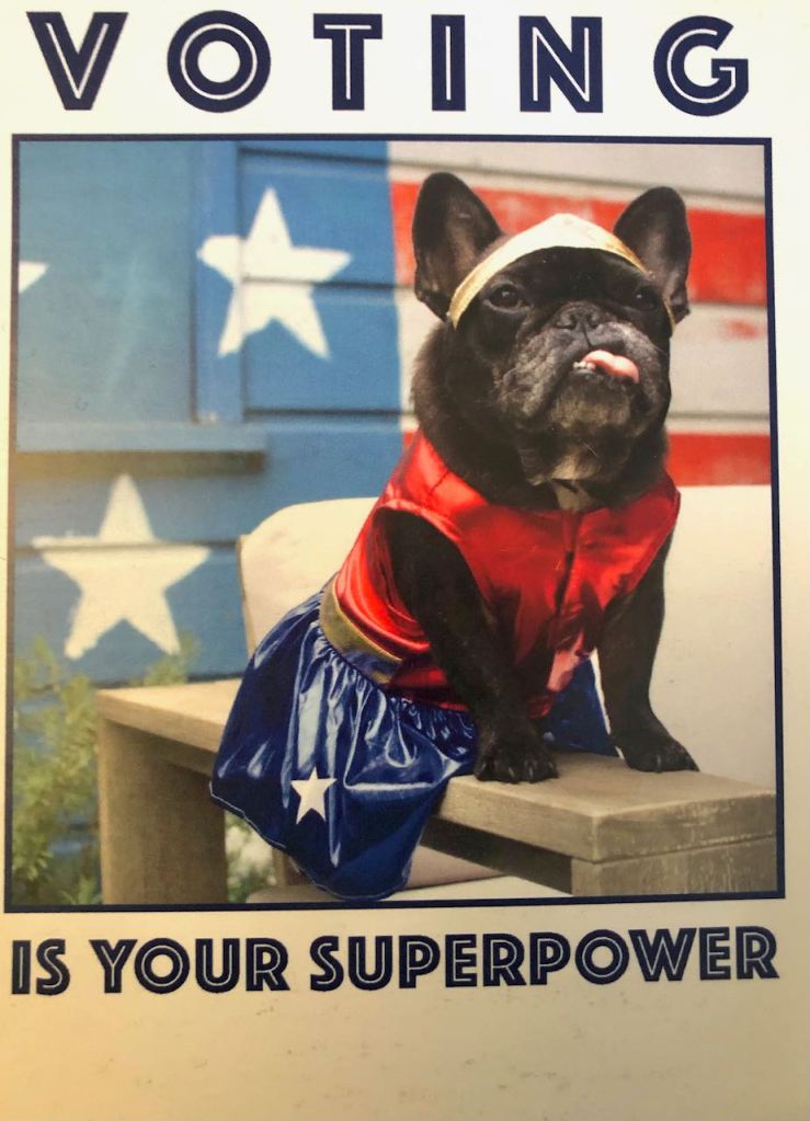 Everyone was “definitely going to vote”, “are you kidding?“. We had D (democrats), I (independents) and U (unaffiliated) voters on our lists. For those not home, we left a funny postcard with a few handwritten lines on the back: