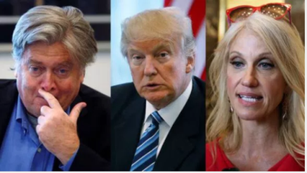 Meanwhile his top advisors look as though there is something wrong, in various dark ways. I’m not being glib — it’s worrisome. Steve Bannon looks as though he has ceased taking care of himself. He looks like he may drink a lot. Perhaps doesn’t sleep. He has a rigorously stated bleak world-view, which sound to be the rumblings of a darkly depressed man. If I judge his facial health, combined with his point of view, I am led to ask whether or not he is making decisions from a solid mental place? Yes, his skin quality tells me that. And what about Steve Miller? Why so much matte foundation, and why does he still look like he’s sweating? Is he nervous? I’ve never seen such an upper lip sweat under that much powder. He seems uncomfortable. Most broadly — what is going on with Kellyanne Conway?