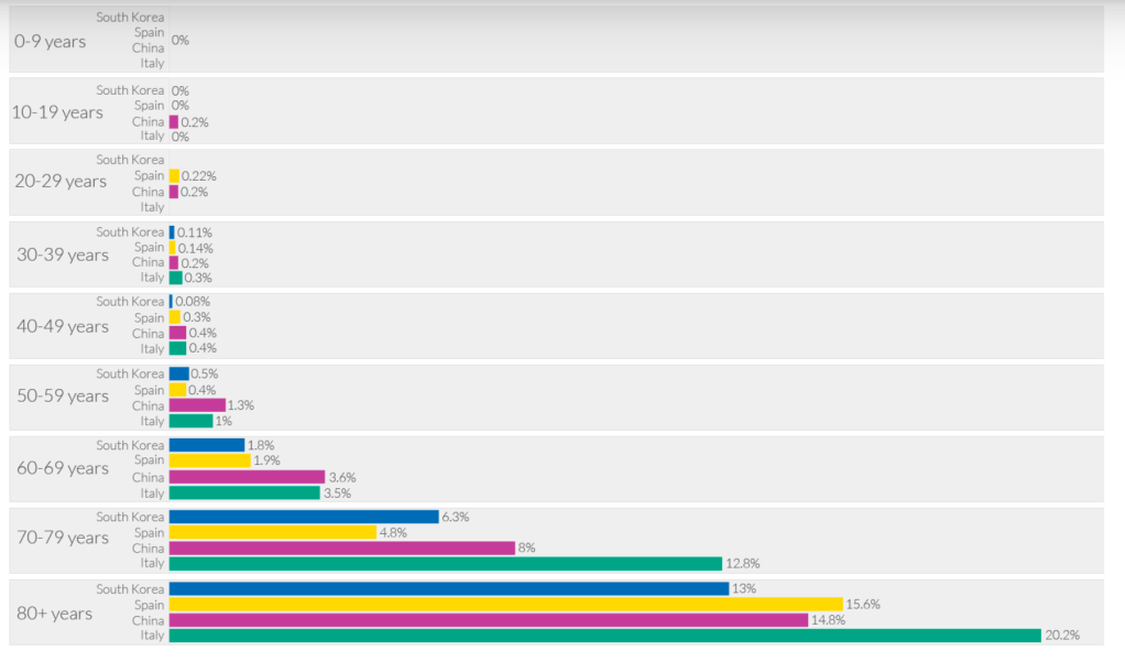 In one study from Georgia of 305 Covid-19 patients that were hospitalized, 39% were admitted to the ICU, but among those older than 65, 54% were admitted to the ICU. Of those in the ICU 37-48% died.