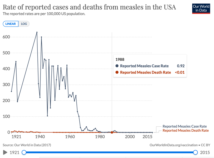 This graph on measles cases is perhaps most instructive. The measles vaccine was first introduced in 1963: