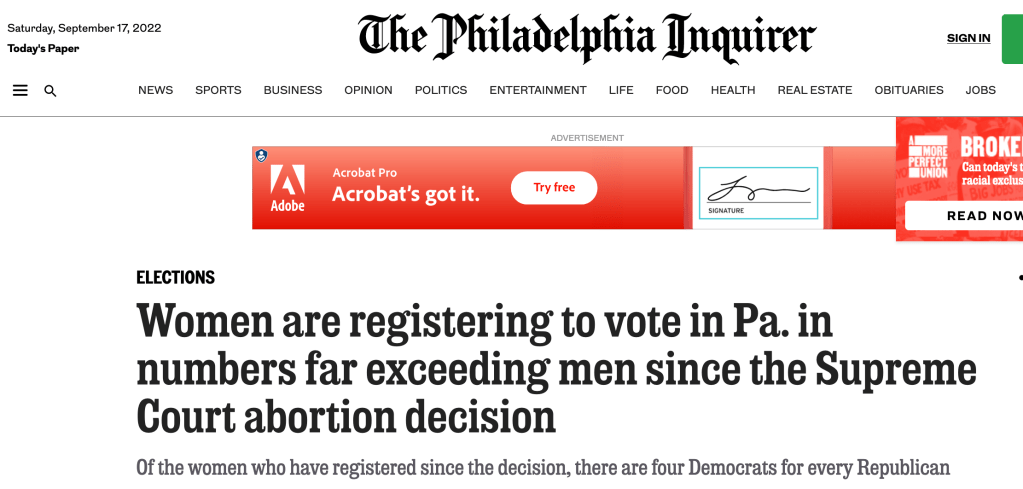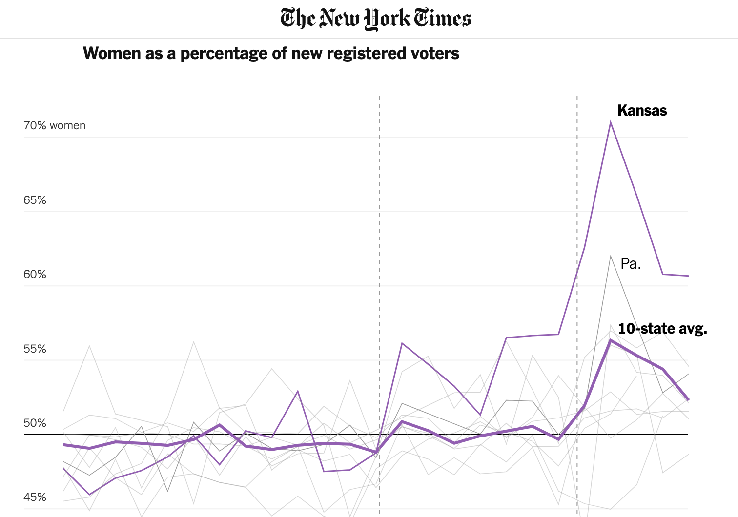 The registration figures are another sign of the real-world political impact of the high court’s decision overturning the 1973 Roe v. Wade ruling