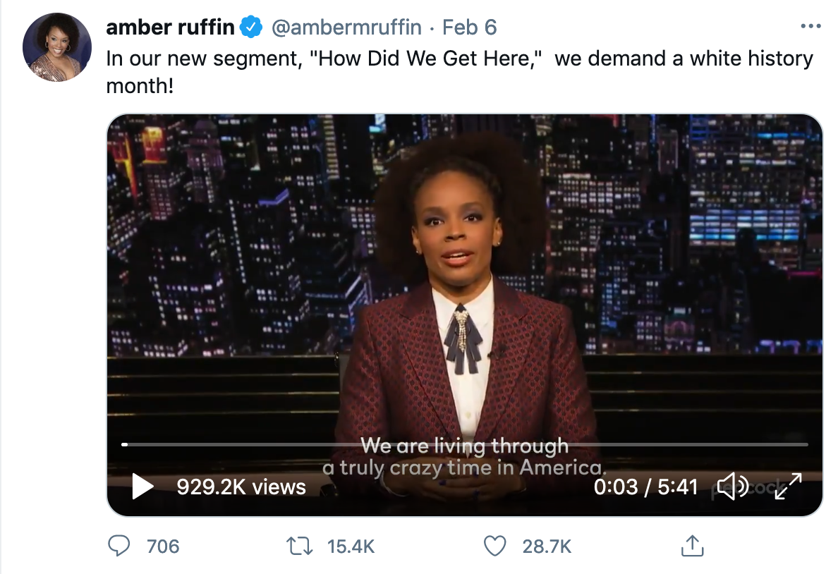 Rabia Aziz sent this out tonight. Since I was clueless about Amber Ruffin, I played it thinking OMG, she must be talking about some Trump racist saying we need a white history month, will this never end. Instead, we got a fascinating American history lesson about something that’s been vaguely talked about but this really put it all together. Thank you, Rabia. I wish all of you could have learned as much as I have over the past three years from Rabia and Miss Lillie about the American history we aren’t taught.